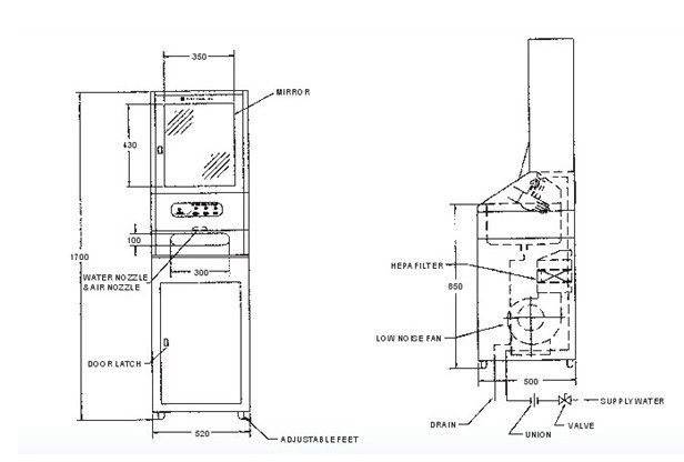 自動(dòng)給水洗手后, 以自動(dòng)高速無塵/無菌空氣吹干, 從電子工業(yè)到制藥, 食品, 醫(yī)院, 研究所, 實(shí)驗(yàn)室, 農(nóng)牧業(yè), 生物科技等方面, 其應(yīng)用范圍廣大。